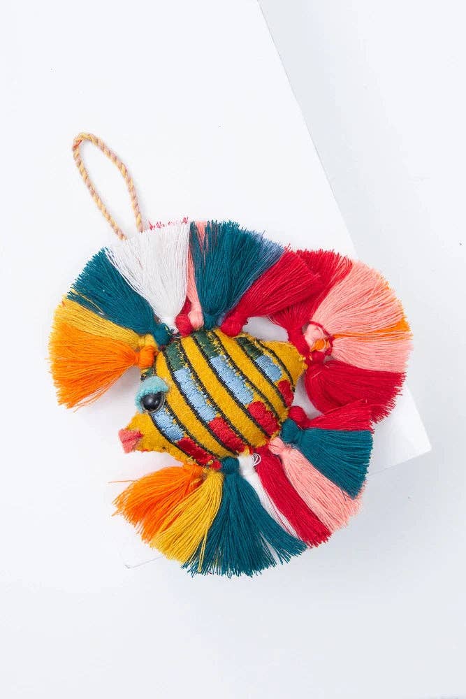 This handmade ornament is ready to bring some tropical flair to trees everywhere. Crafted from soft wool and a brilliant array of tassels, this quirky ornament is inspired by the colors and vibrancy of the Caribbean.