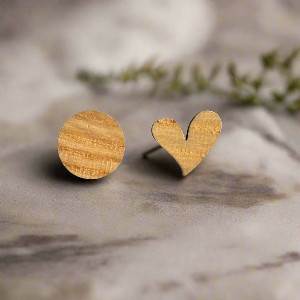 Our Mixed Shaped Studs earrings are a chic addition to any outfit. Crafted from remnants of quality hardwood left from other projects, these little beauties are a perfect example of our effort to infuse sustainability into all our practices. We don’t short change the quality just because we’ve repurposed the wood. There earrings exude a casual yet sophisticated vibe that is perfect for everyday wear. Elevate your style with these unique and stylish studs.
