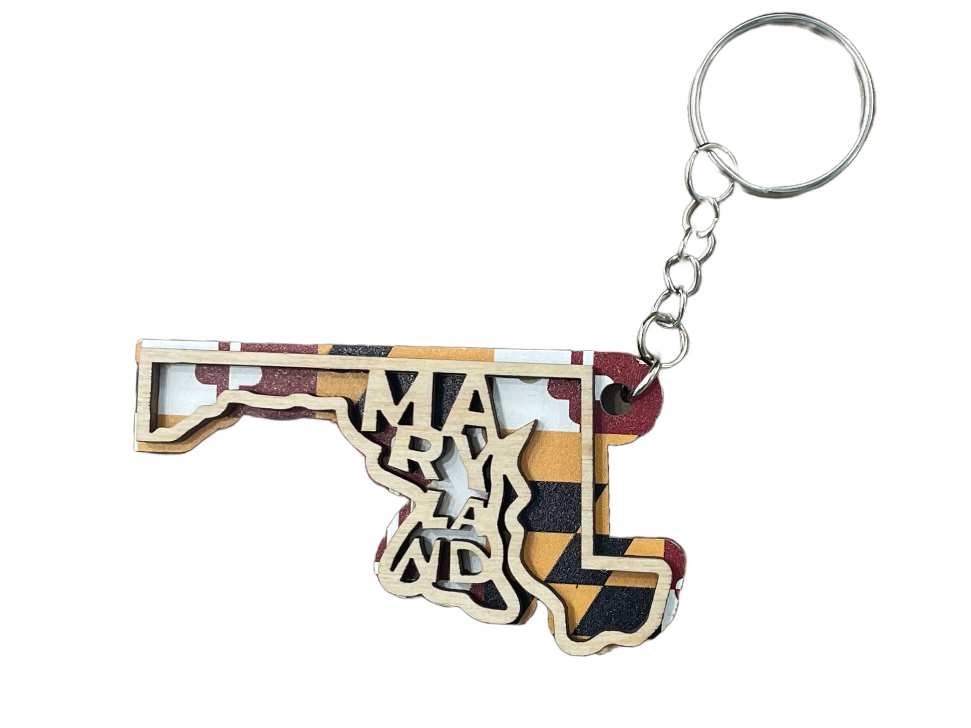 Show off your Maryland pride with this beautiful flag pattern key chain! Made from high-quality MDF and Balsa wood, it adds a touch of charm to your keychain. Perfect for those who love and cherish their home state. Take your love for Maryland with you everywhere you go!
