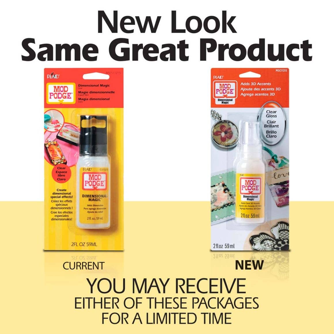Mod Podge dimensional magic clear allows you to add dimension to your arts and crafts. This epoxy-like formula creates a faux glass-like effect that dries clear with a 3d domed shape allowing the surface color to show through. Use mod podge dimensional magic to create jewelry, paper crafting, and more. The bottle features an easy-to-use writer tip - perfect for doing intricate detail work on small decoupage projects. Allow your project to dry for 24 hours for best results. This stay-put formula won't sag or run and can be used on a variety of surfaces including wood, canvas, terra cotta, and so much more. Make mod podge dimensional magic a part of your art supplies for that added touch of character and texture.