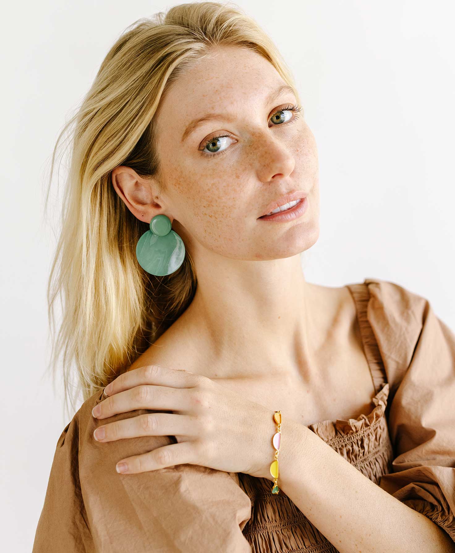 These statement earrings feel like a modern sculpture for your ears. Artisans in Vietnam coat natural shell in seafoam-colored lacquer for a unique, sophisticated look.