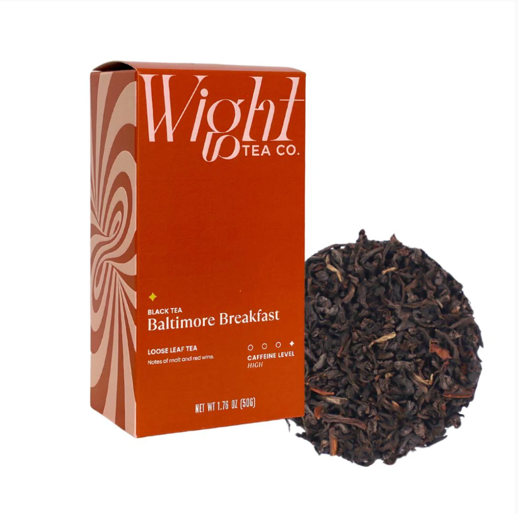 Wight Tea Co.'s handcrafted and quality version of this classic breakfast favorite yields a warm, rich flavor. Baltimore Breakfast gives you the familiarity of an English breakfast blend, but with premium leaves meant to be steeped loose for an exceptional flavor that hints of nuts, malt, cocoa, and red wine. We pride ourselves on using the best black tea varieties for a one-of-a-kind flavor.